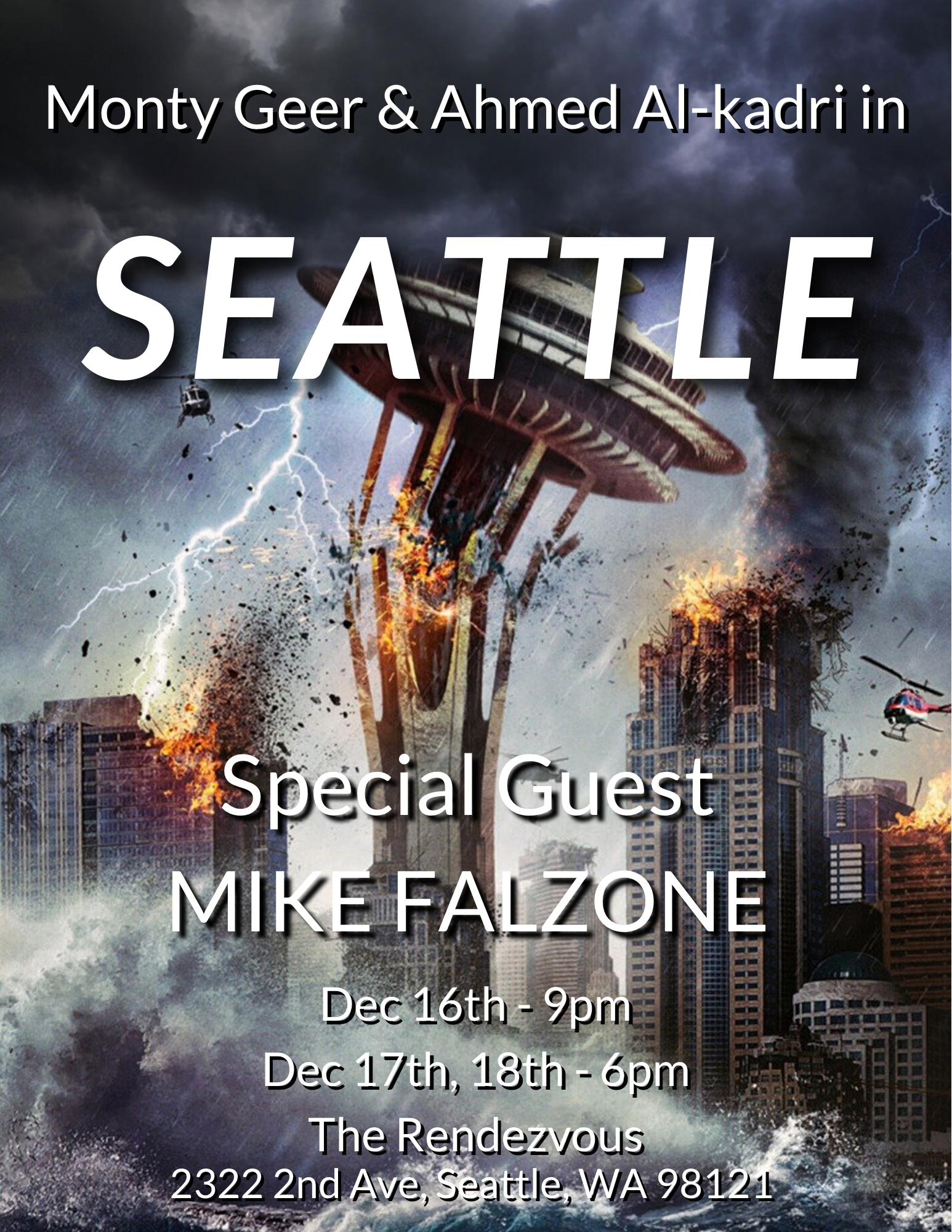 Monty Geer and Ahmed Al-kadri in Seattle with special guest Mike Falzone in the Jewelbox Theater at the Rendezvous